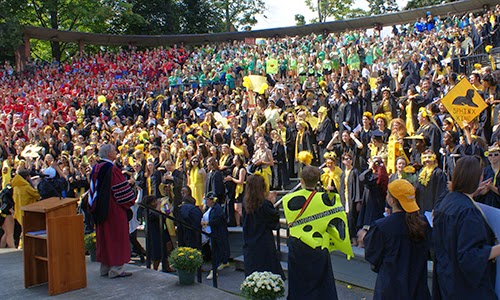 Convocation is celebrated in the amphitheater the day before classes begin, and is held to welcome both new and returning students to campus. There are performances and speeches given by faculty and alumna, and everyone is decked out in costumes and colors to celebrate their class and Mount Holyoke, a college that has pioneered (and continues to lead) women's education in the United States.